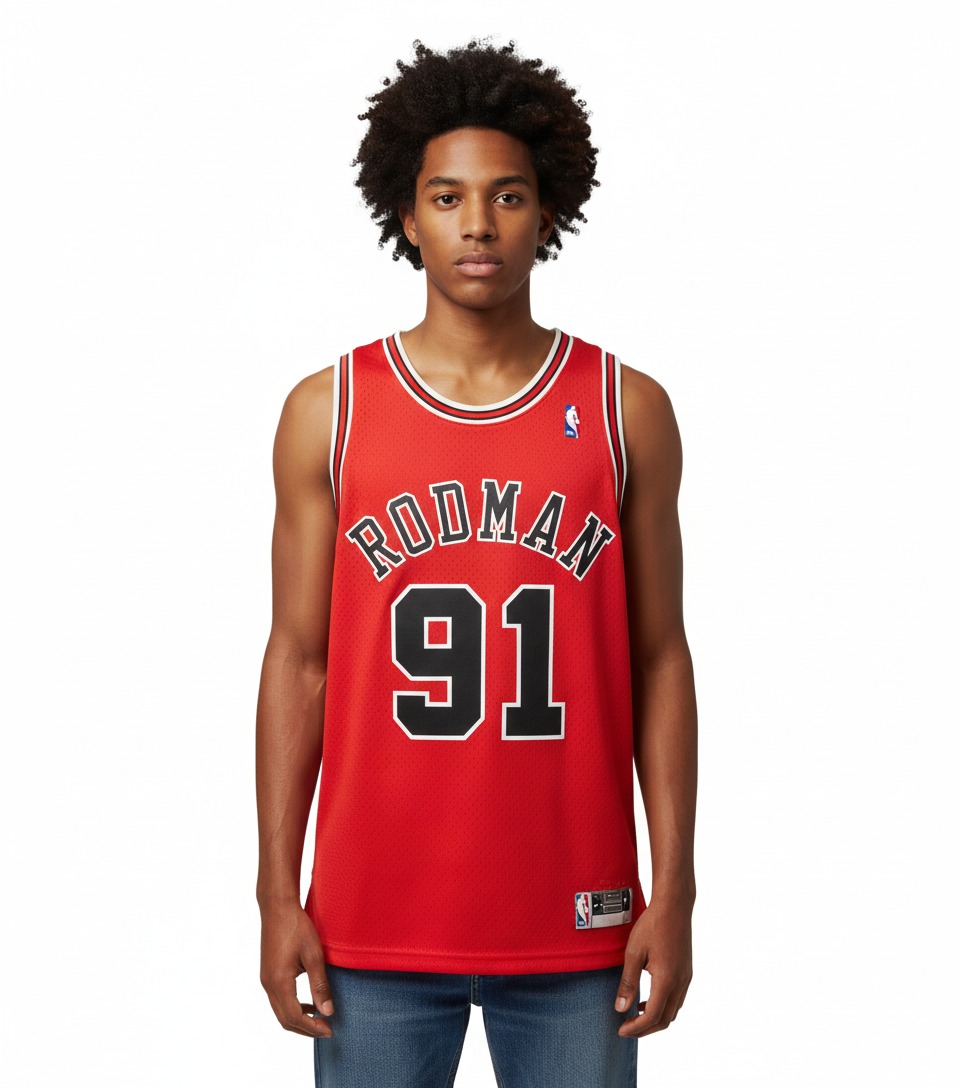 Show off your love for one of the most iconic defenders in NBA history with the Dennis Rodman #91 Chicago Bulls jersey. This vibrant red jersey captures the boldness of Rodman’s personality and skills on the court. Made with premium-quality fabric, this jersey is perfect for fans who want to celebrate the legacy of a true basketball legend.