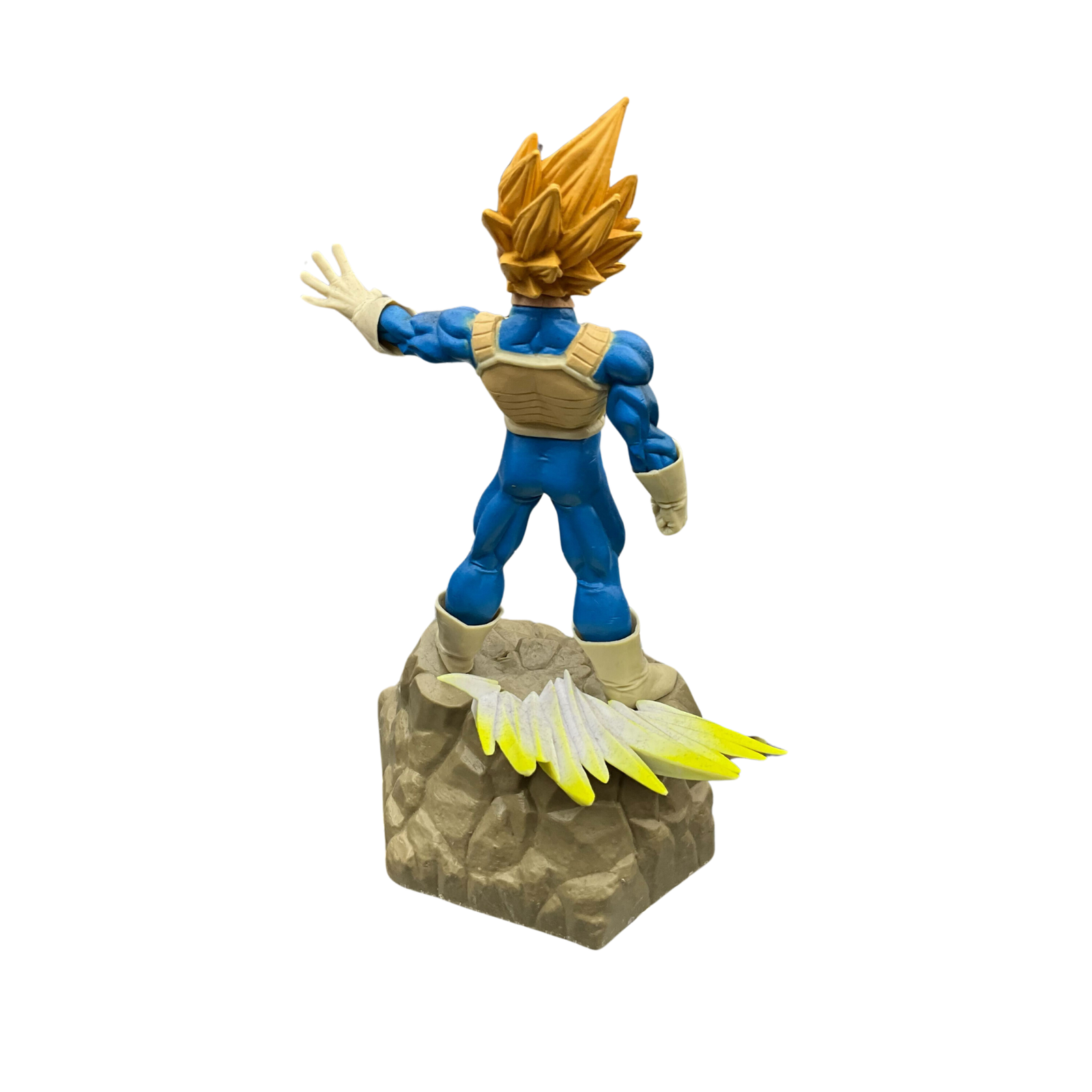 Capture the power of Vegeta with this dynamic Super Saiyan figure from Dragon Ball Z. Displaying Vegeta in a powerful stance on a rocky base with energy effects, this figure embodies the Saiyan prince’s strength and determination. A must-have for Dragon Ball fans, this collectible showcases Vegeta’s iconic transformation and power.
