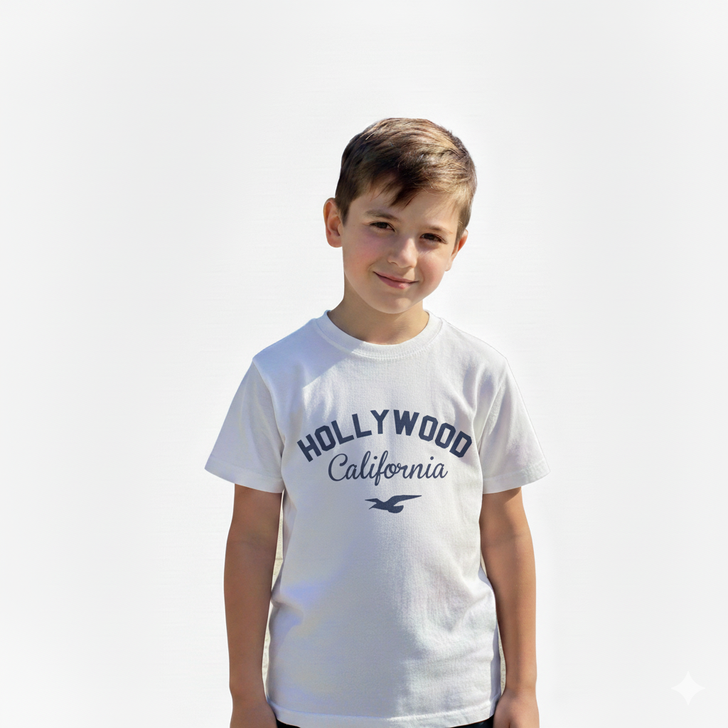 Style meets sunshine with the Hollywood California Kids T-Shirt. This trendy tee features a sleek “Hollywood California” text design, making it a go-to piece for young adventurers. Comfortable and cool, it’s perfect for playdates, vacations, or everyday wear.