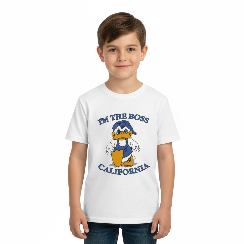 Let your little one take charge in style with the “I’m The Boss California” kids t-shirt. Featuring a playful cartoon boss character and bold text, this shirt adds personality and fun to everyday outfits. Made for comfort and designed to stand out, it’s perfect for spirited young leaders.