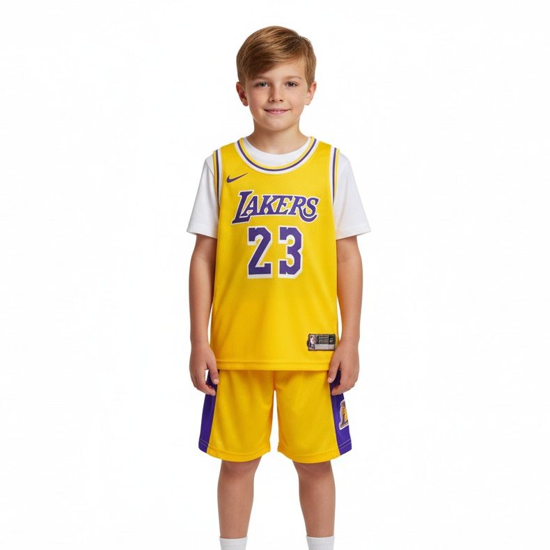 Get your little one game-day ready with the LeBron James #23 Kids’ Lakers Jersey and Shorts Set. Featuring the iconic Lakers colors and LeBron James’ legendary number 23, this set is perfect for young basketball fans. The breathable, lightweight fabric ensures comfort during active play or while cheering from the sidelines.
