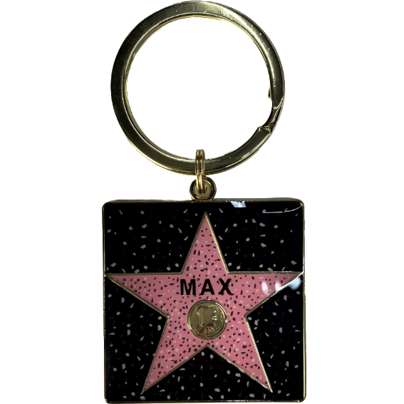 Celebrate star status with the Max Star Keychain! Styled after the iconic Hollywood Walk of Fame stars, this bold and fun accessory is perfect for anyone named Max or those who love celebrity flair.